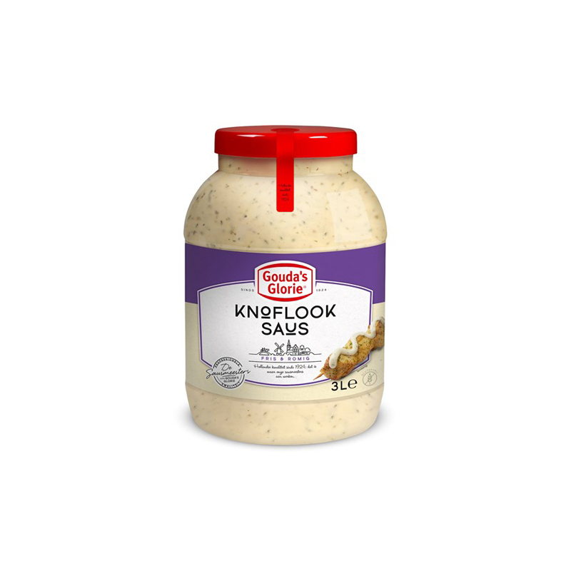 Water, raapolie, glucose-fructosestroop, yoghurt, gemodificeerd zetmeel, azijn, vrije uitloop eigeel, suiker, zout, mosterd (water, mosterdzaden, azijn, specerijen), 0.6% knoflook, voedingszuur: melkzuur, conserveermiddel: kaliumsorbaat, ui, kruiden, dieetzout: kaliumchloride, verdikkingsmiddel: xanthaangom